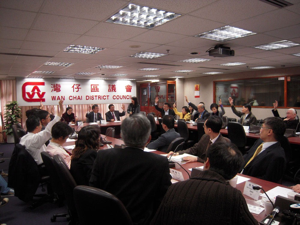 圖:灣仔區議會十三位與會議員一致通過,在區內加裝天眼動議(本報攝)