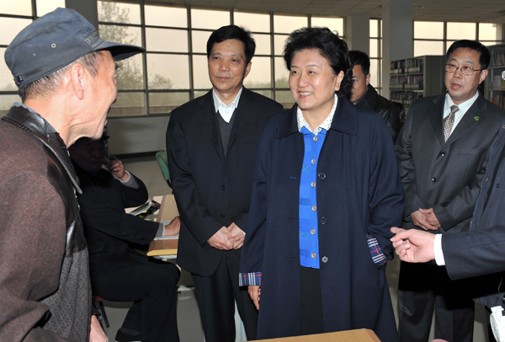 圖:鹿泉市委書記安樹國(右一)陪同中央政治局委員、國務委員劉延東,河北省委書記張雲川視察鹿泉市宣傳文化中心