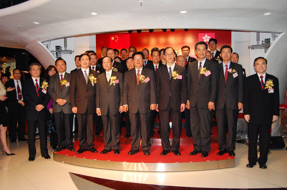 【本報訊】新界總商會於日前在圓方商場戲院大堂舉行慶祝中華人民共和國成立六十周年「建國大業」慈善電影欣賞晚會暨新界總商會五十金禧慶祝酒會及「社會服務基金」開啓禮,邀得中聯辦副主任周俊明、新界工作部副部長張肖鷹、民政事務局局長曾德成、新界總商會首席榮譽會長劉皇發、行政會議非官守議員召集人兼新界總商會榮譽會長梁振英、行政、立法兩會多位成員,以及新界總商會會長張德熙、主席王振聲等嘉賓親臨主禮。是夜冠蓋雲集,眾嘉賓會友聚首一堂,齊為祖國富強、香港繁榮及會務興旺送上美好的祝福。