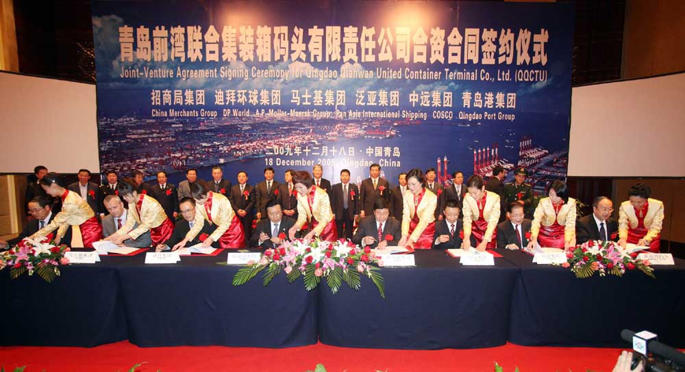 記者了解到,QQCTN由青島港集團、阿聯酋迪拜環球港務集團、中遠集團、丹麥馬士基集團、香港泛亞集團組建,可稱「三國五方」。青島港集團總裁常德傳稱,通過與招商局合組新公司,可形成「三國六方」,現在就要有箱量,且年底以前馬上見效。