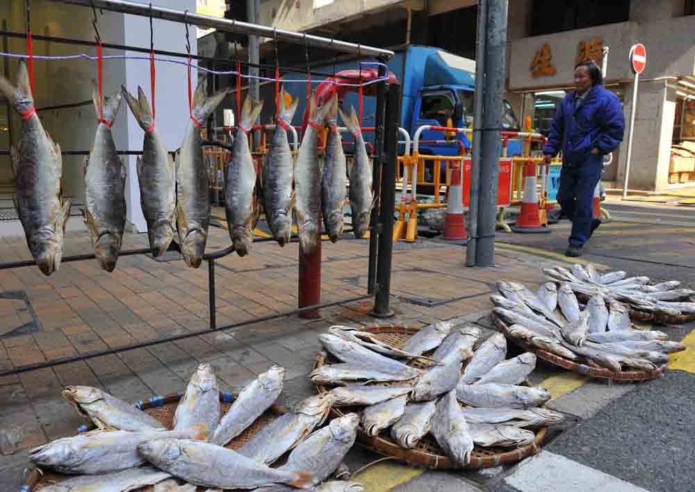 西營盤德輔道西「海味街」,以前本是「鹹魚欄」,成行成市都是鹹魚舖。五十多年前,有柱躉的四層高樓宇裡,地面作舖,樓上是工場和夥計宿舍,天台則用作曬鹹魚。經生鹽醃過、太陽曬過三四日的梅香鹹魚,乾身且香。這跟屍體的腐爛酸臭,是兩碼子的事。