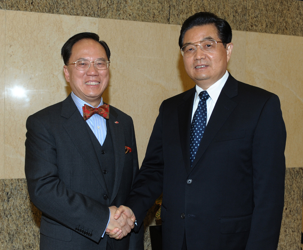 圖:圖為國家主席胡錦濤上周六在出席澳門特別行政區成立十周年慶祝活動前與曾蔭權見面