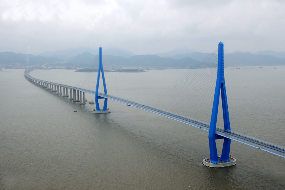 國:舟山連島大橋斜拉式設計,從空中鳥瞰其狀觀