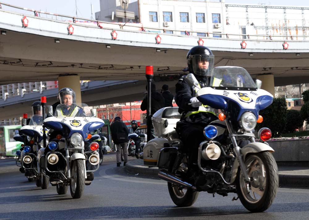 圖:鄭州特警武裝在街頭巡邏 (本報攝)