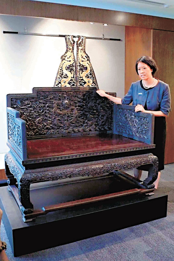 圖:這張清乾隆御製龍椅,以八千多萬元成交,打破中國傢具拍賣紀錄 (本報攝)