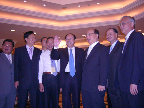 圖:海協會副會長鄭立中(右四)在廈門會見台中市長胡志強(右三)一行(李珊攝)