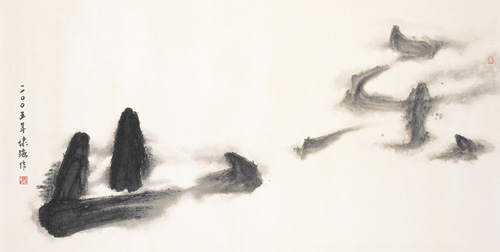 圖:靳埭強的水墨作品︽仁者︾融合書法與山水畫