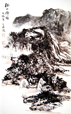 縱觀他的山水作品,可以用「古韻新顏」四字冠之。不僅墨法筆法活潑靈秀,華滋蒼潤,而且能廣取博學,達到無一筆無出處,無一點非己意。由作品《深隱圖》、《山蒼蒼》中,可以感覺到作者善細化,能深入的藝術功力,來自他多年問學傳統,上溯董巨李范,宗法倪瓚、王蒙、漸江、梅清諸家的頓悟積澱。