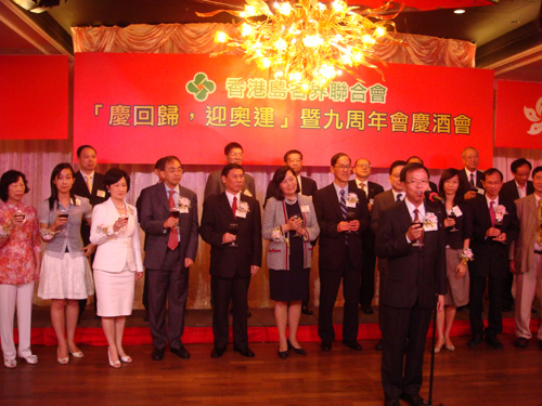圖:香港島各界聯合會昨舉行「慶回歸,迎奧運」暨九周年會慶酒會(本報攝)