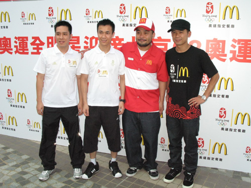 「麥當勞奧運全明星迎接08北京奧運」活動,昨日於文化中心露天廣場舉行,出席嘉賓有林海峰(Jan)、葛民輝、乒乓孖寶李靜、高禮澤及霍震霆等。會上各位嘉賓連同二百位青少年齊展示全球最大的「中國加油」巨型貼紙,希望可以打破健力士世界紀錄。