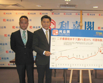 樓市步入調整以來,成交量顯著減少,雖則樓價尚未有大幅下調,然而利嘉閣地產分析認為,困擾樓市的利淡因素正發揮威力,預計在未來1、2個月內,二手樓市交投料會繼續低位徘徊,每月二手住宅買賣宗數僅5000至6000宗的偏低水平,樓價走勢方面,鑑於目前二手沽壓增大,相信短期內樓價將再試低位,料短期內將再跌8%至10%。