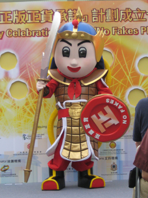 慶祝會現場介紹計劃的吉祥物「正版大將軍」,他將於暑假及奧運會期間於周末在香港及九龍的旅遊點出現,向公眾派發宣傳單張和環保袋。