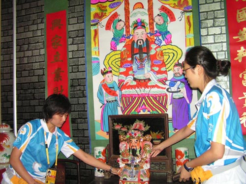 圖:奧運分村內的民俗展(本報攝)