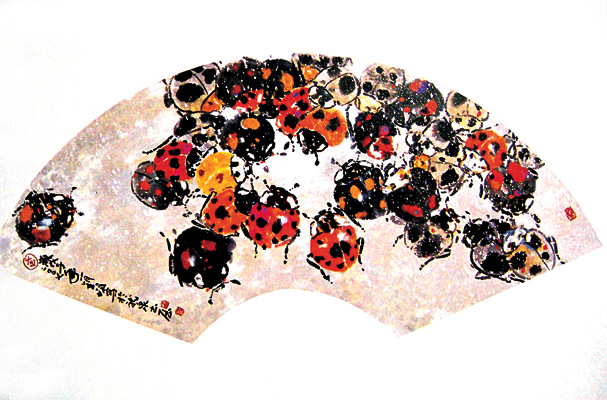 袁金塔至今還保留着鄉村兒女的質樸。他告訴記者,農村的童年生活影響着他的創作,從題材上,他常常繪製的昆蟲、魚類,都是小時候自己親眼所見。之所以一直保存童年記憶,一方面這些記憶就是他生命的一部分,另一層面則是他把過去的記憶拿來與現今的社會情況對比,以藝術的形態轉換成畫筆下的繽紛世界。