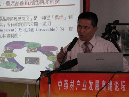 他認為,「農產品產銷履歷制度」是一種從「農場」到「餐桌」、所有產銷信息公開、透明及可追溯的一貫化安心保證制度。該制度是確保生產者、消費者雙贏的策略,生產者與消費者透過信息互動,將成為好朋友。他介紹,台灣目前制定良好農業規範TGAP並已公告的項目有:水稻、甘蔗、茶葉、山藥、落花生、甜玉米、洛神葵7個農藝作物及綠竹筍、甜椒、草莓、西紅柿等近30個蔬菜品種和芒果、木瓜等20多種果樹及幾十種有機農作物。