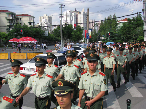 圖:上海大批武警進入警戒區域(本報攝)