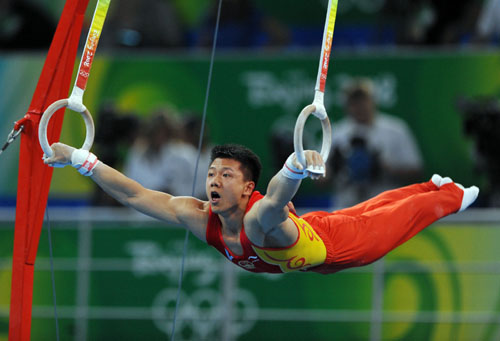 圖:中國選手陳一冰在吊環決賽中以16.600的成績奪得冠軍 (新華社)