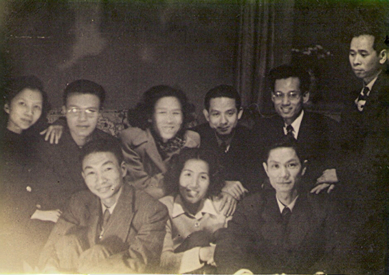 圖:香島中學創辦人合照。吳炳昌(前左一)、潘比薇(前中)夫婦與友好黃作梅(後右三)等合影