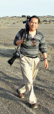 圖:攝影家高鶴雲走到大漠中,拍攝胡楊樹英姿