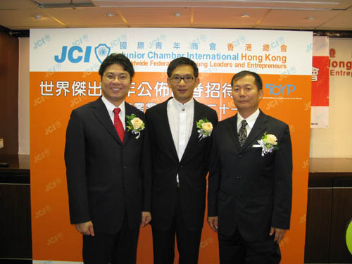 圖:甄韋喬(中)當選2008世界傑出青年,右為1998年世界傑青張偉良