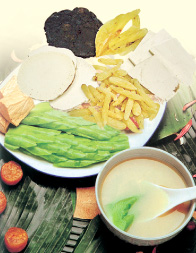 用料:熟地黃五錢、淮山四錢、茯苓四枚、澤瀉八錢、丹皮三錢、山萸肉三錢、豬橫脷(胰)一條