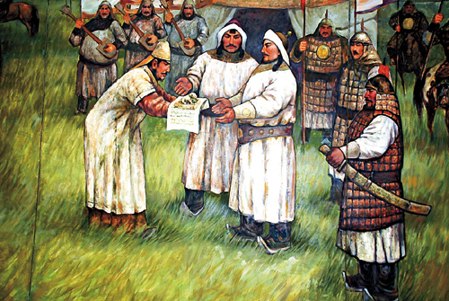 圖:12世紀80年代鐵木真稱汗,從此,「成吉思汗」名號在草原上廣為人知