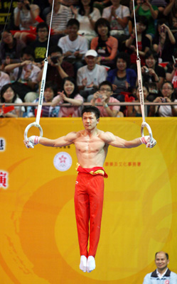 「吊環王」陳一冰的表演更將熱血沸騰的氣氛推向高潮。一向予人含蓄的陳一冰和楊威比試吊環,在首次試比十字懸垂時,陳一冰即假裝肩頭受傷,要老大哥楊威替他「揼骨」,及後「帶傷」的陳一冰更乾脆赤膊上陣,在全場如雷的尖叫聲和加油聲下,示範完美的十字懸垂動作,看得如痴如醉的女觀眾紛紛大叫「嘩!好MAN呀」、「你好靚仔呀」、「我愛你」、「你是最好的」。由於觀眾吶喊太過熱情,李小鵬和黃旭在雙槓表演,不得不數次被笑聲和掌聲中斷。