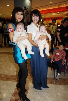 曾與吳卓羲先後傳緋聞的官恩娜(Ella)及梁靖琪(Toby),昨日聯同裕美出席「海港城Kids IN Style時裝表演」,她們分別帶領小朋友展示二○○八秋冬童裝系列,期間Ella及Toby更抱着一對孖生BB出場,但見她們抱得有板有眼,原來她們都很喜歡小孩子,但講到男友,她們立即與吳卓羲劃清界線。