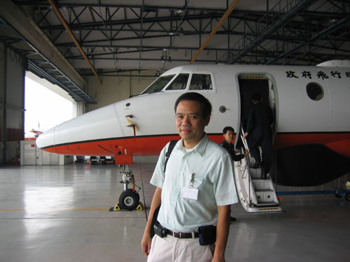 圖:黃健康博士親自登上定翼機測試最新搜救系統