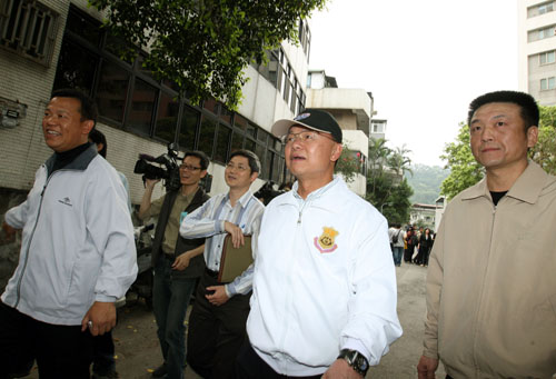 圖:許惠祐(右二)被形容是藍綠通吃的人物,這是他在今年三月的「大選日」赴馬英九家視察維安措施(資料圖片)