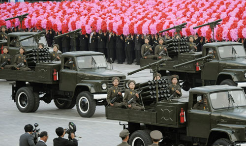 ■朝鮮首都平壤九日舉行了隆重的國慶閱兵儀式(見圖),但據報道,朝鮮最高領導人金正日沒有在紀念朝鮮建國六十周年的閱兵儀式中現身。韓聯社更稱,今次閱兵儀式由朝鮮的第二號人物——最高人民會議常任委員會委員長金永南負責檢閱,國防委員會第一副委員長趙明錄陪伴在側。韓國《朝鮮日報》引述一名韓國駐華使館官員指,金正日於八月二十二日病倒。外界一直傳言六十六歲的金正日患有糖尿病及心臟病,增添金正日病危消息的可信性。