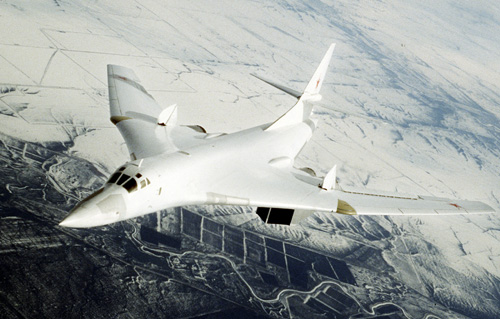 據透露,俄羅斯空軍現有十四架Tu-160戰略轟炸機。該型轟炸機是世界上最大的軍用飛機之一,起飛重量二百七十五噸,飛行高度一點六萬米,航程可達一點三萬公里,配備四名機組人員。該飛機可攜帶十二枚帶有核彈頭的導彈,用於打擊敵人後方縱深的重要目標。