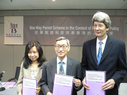 智經研究中心委託港大教授白景崇、葉兆輝和浸大教授林潔珍,聯同該中心單程證研究小組召集人黎慶寧等,就本港的單程證使用情況進行研究。結果發現,自九七年起,單程證成為本港人口轉變最主要的因素;而根據政府發表的統計預測,本港人口正逐步老齡化,總出生率非常低,每名本港婦女生育不足一名嬰兒,令受供養人口的比例將會在三十年間上升二點五倍。所以如何善用單程證計劃,對持續增加本港年輕人口起着重要作用。