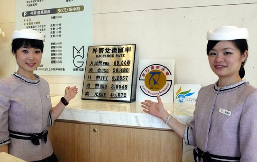圖:為迎接大陸觀光客,嘉義縣一家零售商新設置了人民幣兌換新台幣服務(中央社)