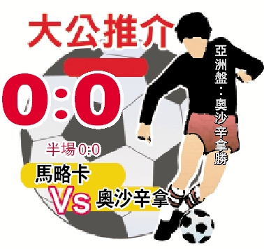 西甲聯賽今晚其中一場賽事,由馬略卡主場對陣奧沙辛拿。馬略卡在上季也可算是一路奇兵,可惜本屆的情況已今非昔比,主力射手古爾沙離隊後已變成一支實力平庸的球隊,絕對無力擊倒奧沙辛拿,此戰隨時悶和收場。