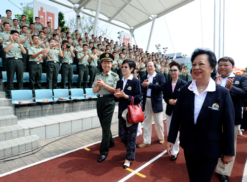 □今年是解放軍駐港部隊第十一次在香港度過中秋,全國政協副主席董建華夫人董趙洪娉、行政長官曾蔭權夫人曾鮑笑薇等,昨日率領香港各界人士組成的中秋探訪團,前往昂船洲海軍基地,送上節日問候,軍民同樂齊慶中秋。\本報記者 黃俊鋒