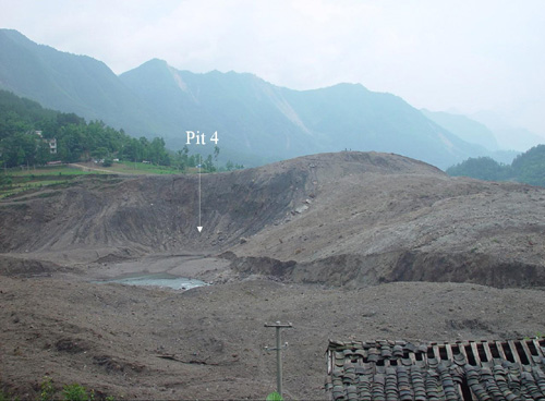 圖:陳家壩滑坡有一千二百萬立方米,導致四百人死亡。岩口便是由四個噴出口湧出,而圖中的噴出口,已被周邊的泥土掩埋