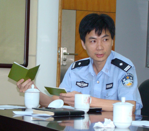 圖:福建省公安廳出入境管理處工作人員向本報記者介紹新舊台胞通行證的區別