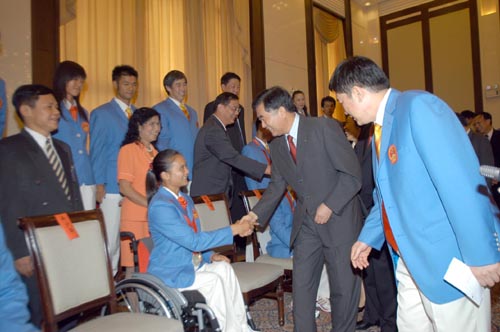 中共中央政治局委員、省委書記汪洋等領導在會前親切接見參加本屆殘奧會的41名廣東運動員、教練員和工作人員。汪洋在接見時表示,粵殘奧健兒為國家、廣東贏得榮譽的同時,從他們身上表現出的自尊、自信、自強、自立的精神,也是民族精神和時代精神的體現,殘奧精神是一筆寶貴的精神財富。