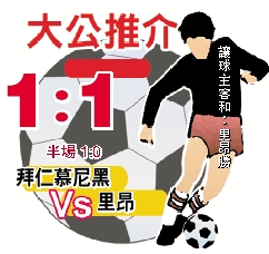 法甲班霸里昂季初的狀態比拜仁還要好,上場聯賽主場二比一擊敗南錫,開季八戰仍保持不敗共取六勝二和的超卓戰績。不過,今仗里昂始終要作客,面對歐冠杯經驗豐富的拜仁拿一分已經有交代。