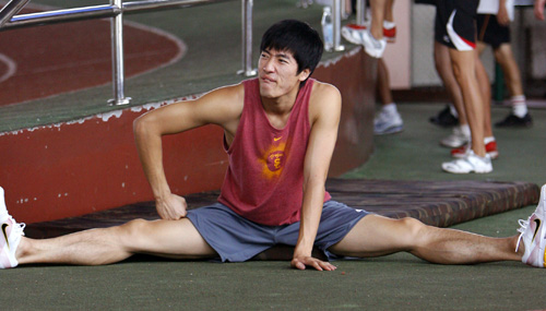 圖:劉翔的腳部雖然有傷,但仍然堅持訓練  (新華社)