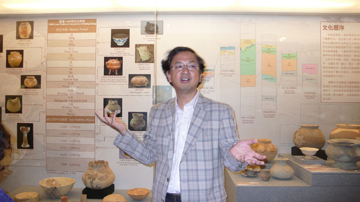 圖:鄧聰指出,香港由新石器時代至明清時期,每一個朝代都有出土的文物 (本報攝)