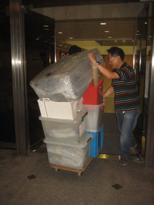 圖:警方昨日運走一眾涉案證物,包括一直沒有曝光,被用作運屍的行李篋