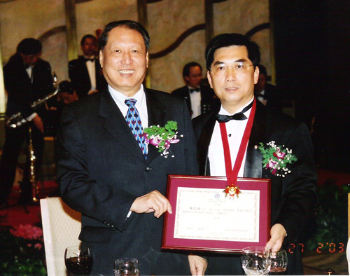 圖:全國人大副委員長成思危(左)頒發中華愛心功績勳章