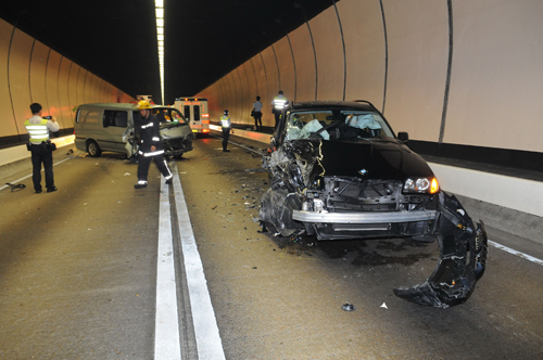 圖:兩車在大老山隧道內相撞,私家車損毀嚴重