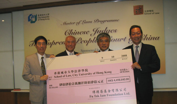 香港城市大學獲傅德蔭基金捐贈港幣逾四百四十萬元,全額資助三十位即將入讀城大法律學院「法學碩士課程」的內地法官的學費及生活費。