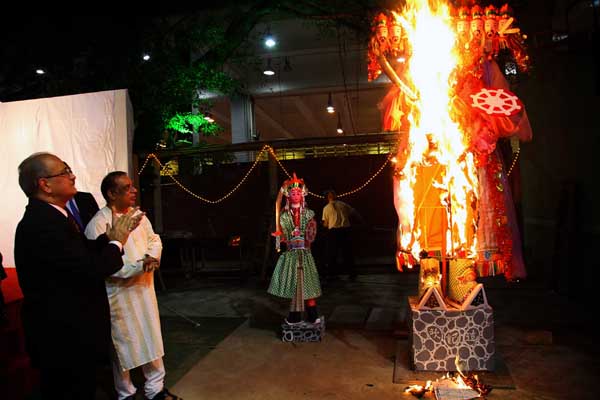 圖:印度教徒慶祝十勝節時燒毀十頭魔王像