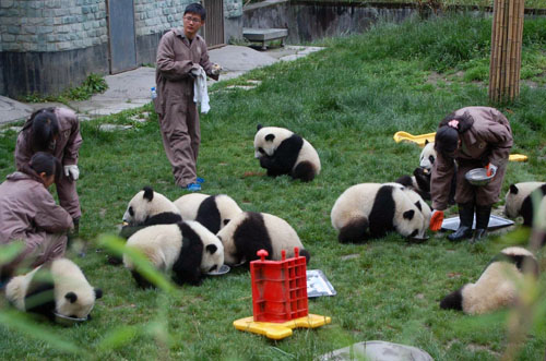 震後臥龍誕生14隻熊貓崽