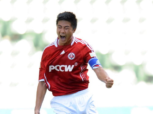 圖:李海強罰球妙射建功後興奮莫名 (本報攝)