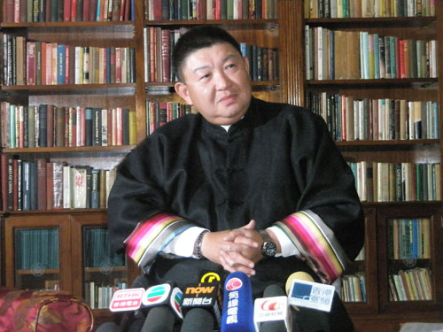 圖:李大壯昨早發出公開信後回答傳媒提問(本報攝)